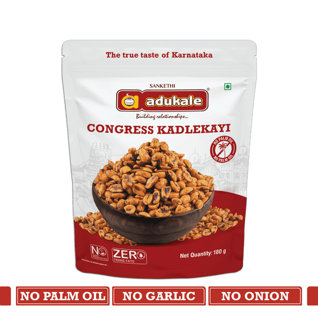 At Adukale, we take pride in offering authentic Indian snacks that are made using traditional recipes and high-quality ingredients. Our Congress Kadlekayi is no exception. Each bite is packed with authentic Bangalore flavors that will leave you craving for more.